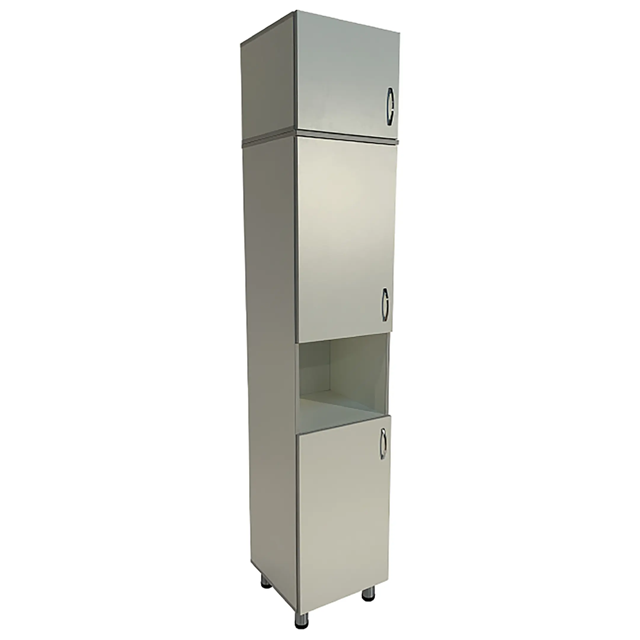 • Ниша шкафа разделена на отделения, что помогает эффективно организовать хранение и быстро находить необходимые материалы.