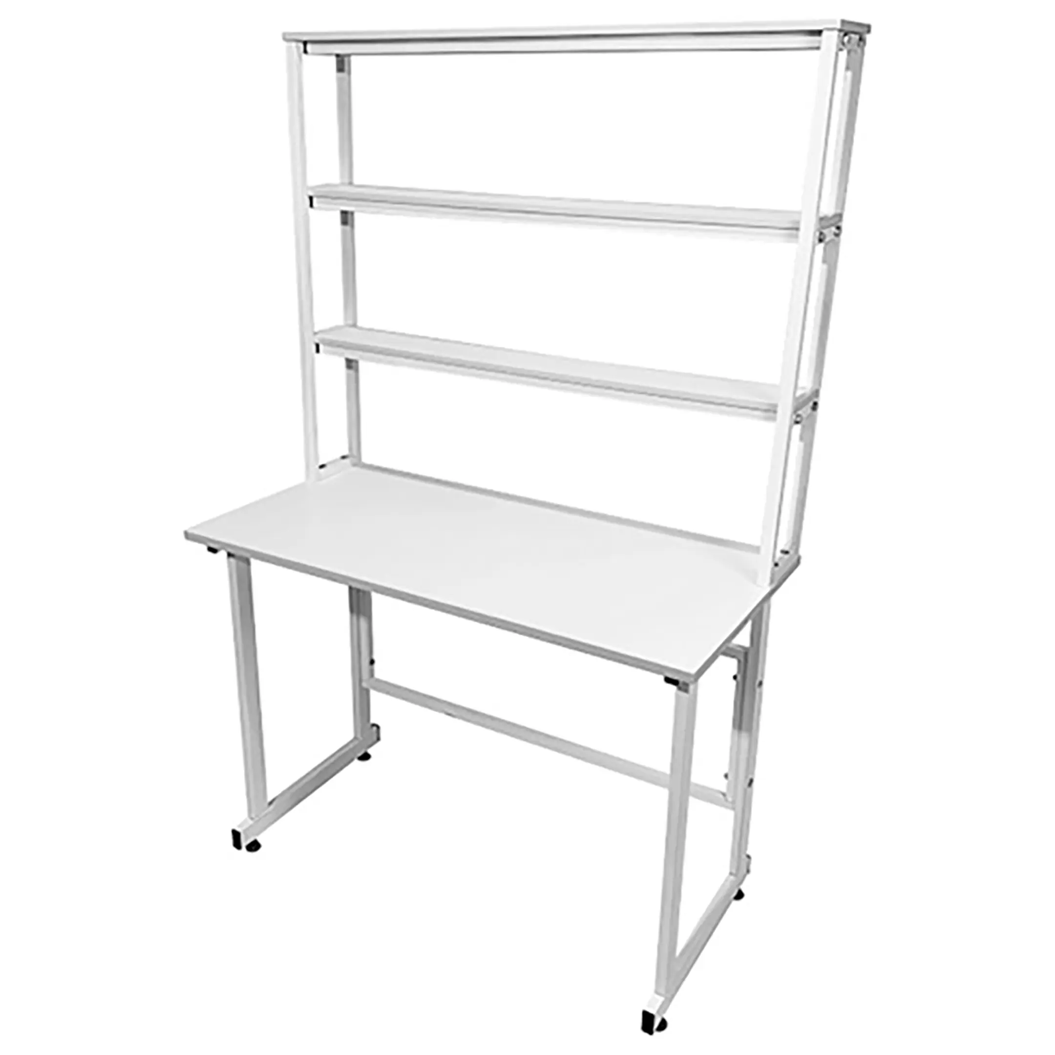 - Функциональная надстройка — три полки из ЛДСП 16 мм для дополнительного хранения материалов и инструментов, нагрузка до 10 кг на каждую полку.