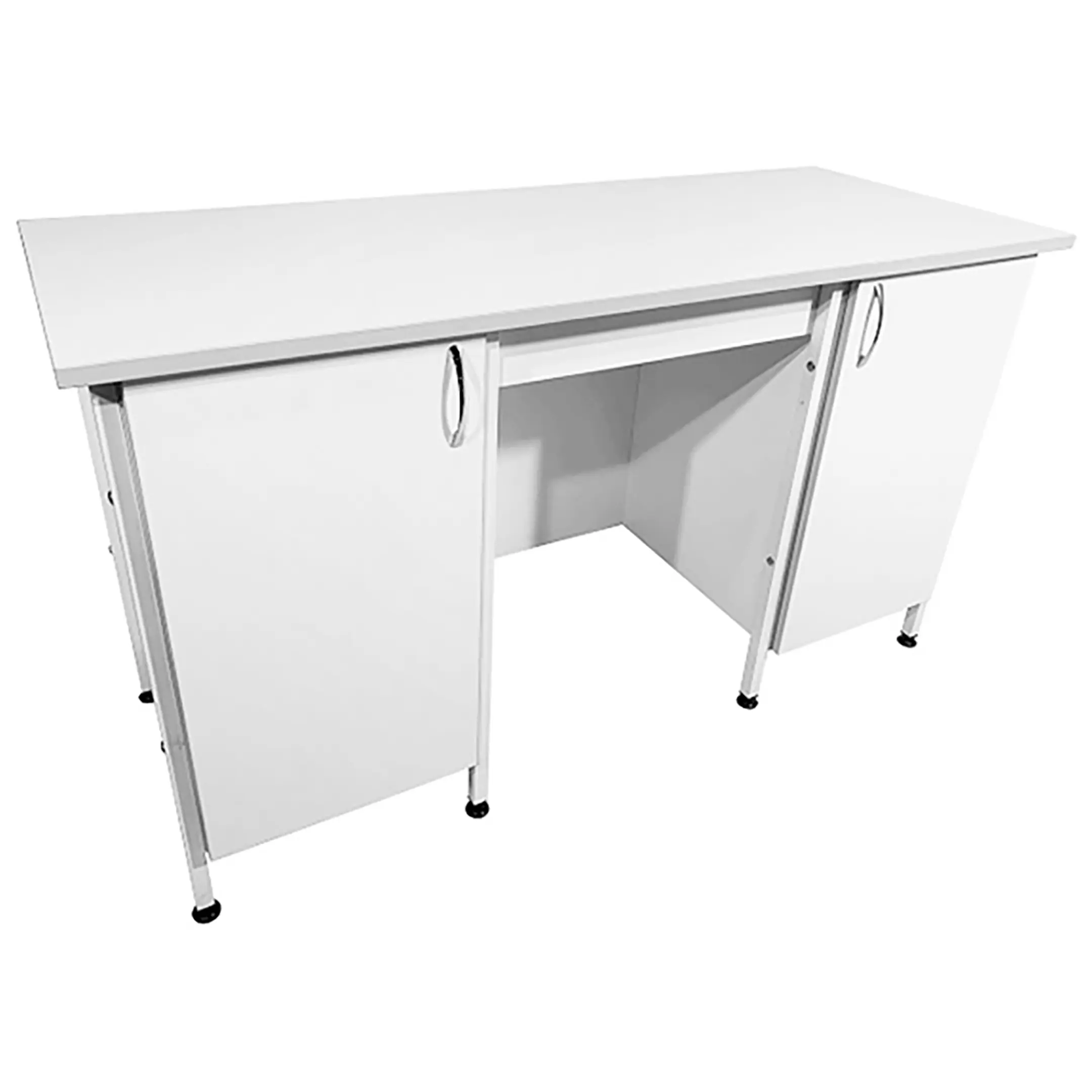 Стол лабораторный СЛ 12.014 (белый) — это идеальное решение для создания эффективного и удобного рабочего пространства в лабораториях и медицинских учреждениях. Модель оснащена двумя тумбами с распашными дверками и полками внутри. Каркас выполнен из стального профиля, столешница из ЛДСП толщиной 22 мм.