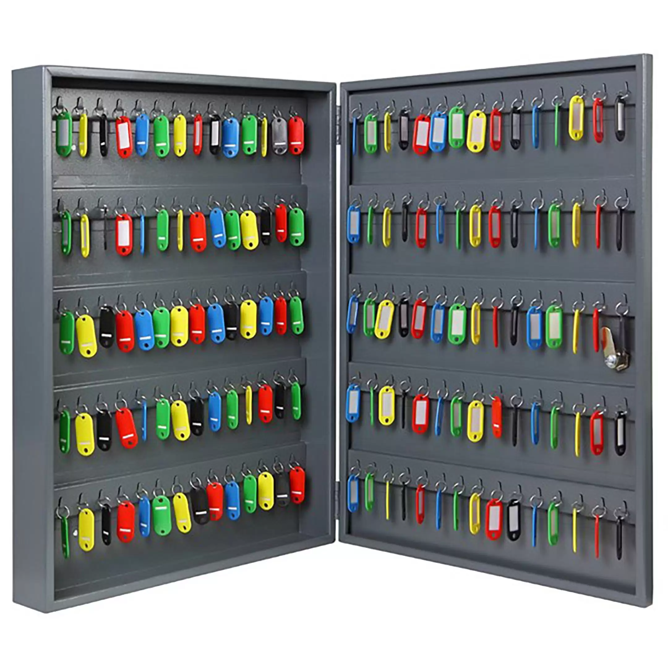 - Максимальная вместимость и комплектация — рассчитана на хранение большого числа ключей и поставляется с полным комплектом пронумерованных брелков для немедленного ввода в эксплуатацию.