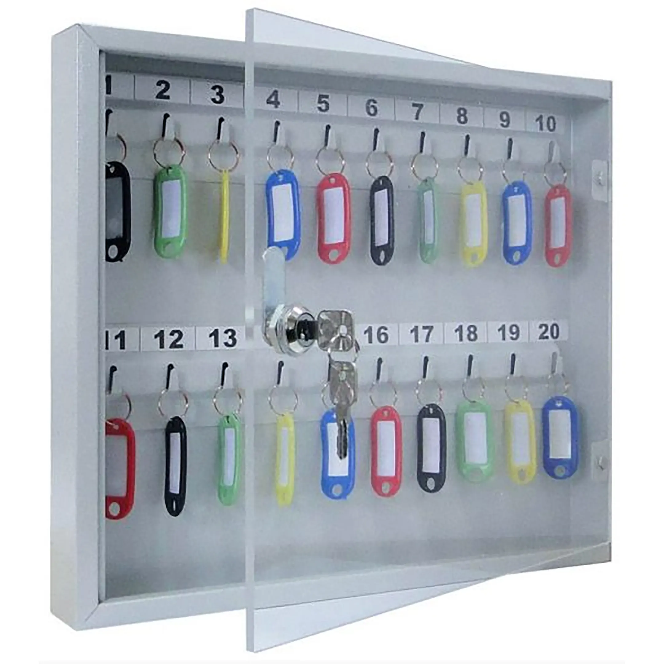- Наглядность и мгновенный визуальный контроль — прозрачная дверца позволяет с первого взгляда оценить наличие и расположение всех ключей без необходимости открывания. Это обеспечивает оперативную проверку, быстрый поиск нужного ключа и предотвращает ошибки, связанные с его отсутствием на месте.