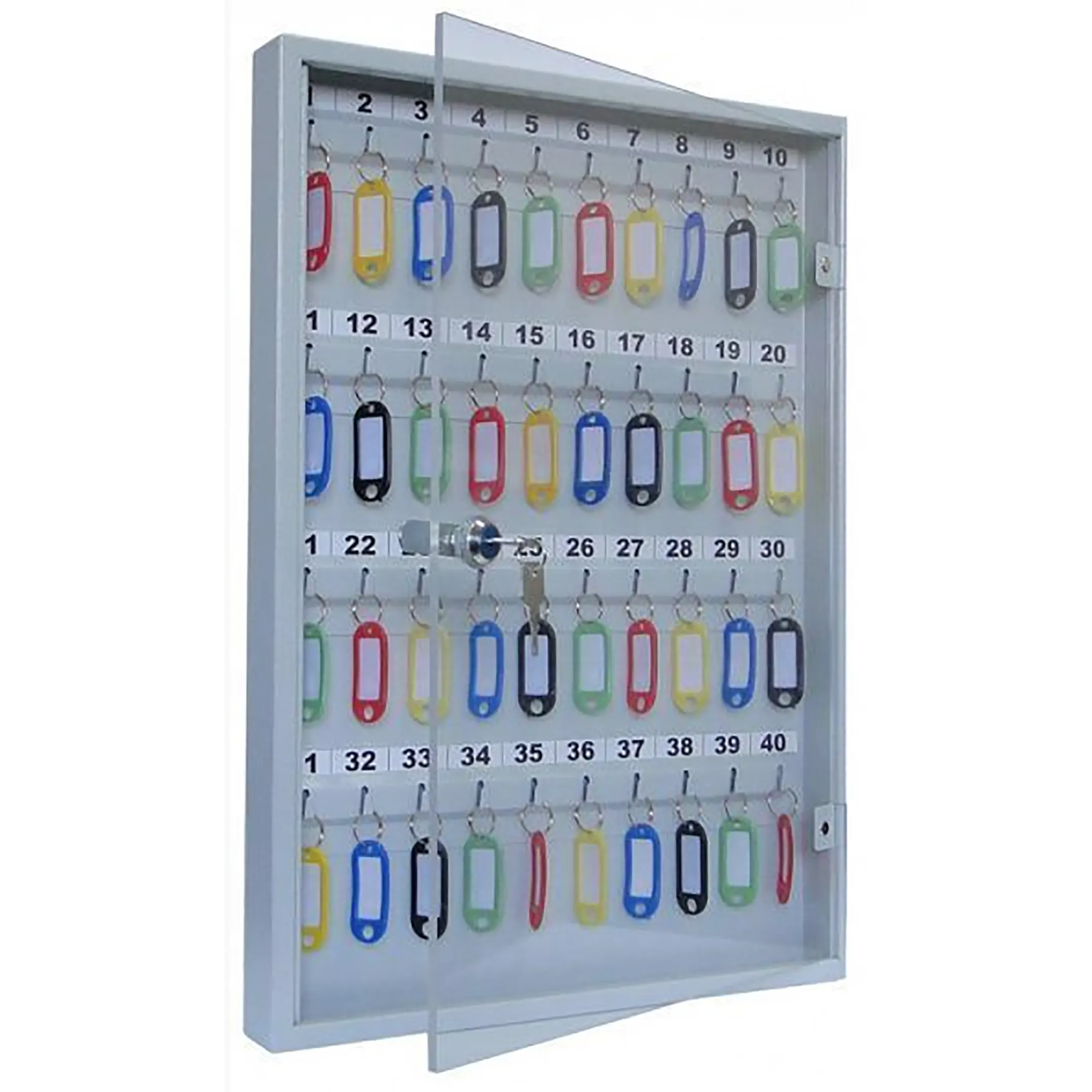 - Наглядность и мгновенный визуальный контроль — прозрачная дверца позволяет с первого взгляда оценить наличие и расположение всех ключей без необходимости открывания. Это обеспечивает оперативную проверку, быстрый поиск нужного ключа и предотвращает ошибки, связанные с его отсутствием.