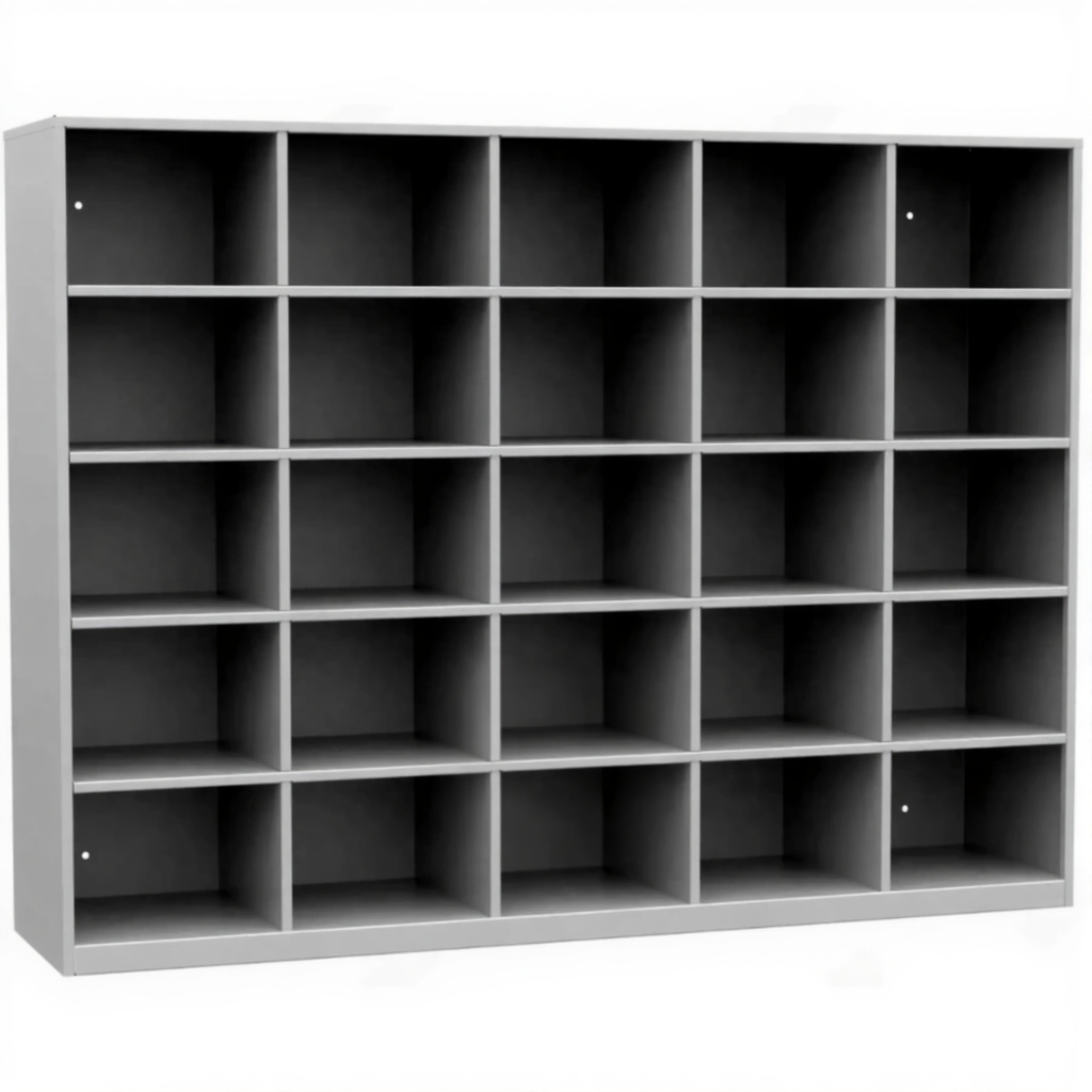 - Прочная и устойчивая конструкция — шкаф изготовлен из надежных материалов, усиленных для выдерживания веса тяжелой обуви и активной эксплуатации в общественных местах.