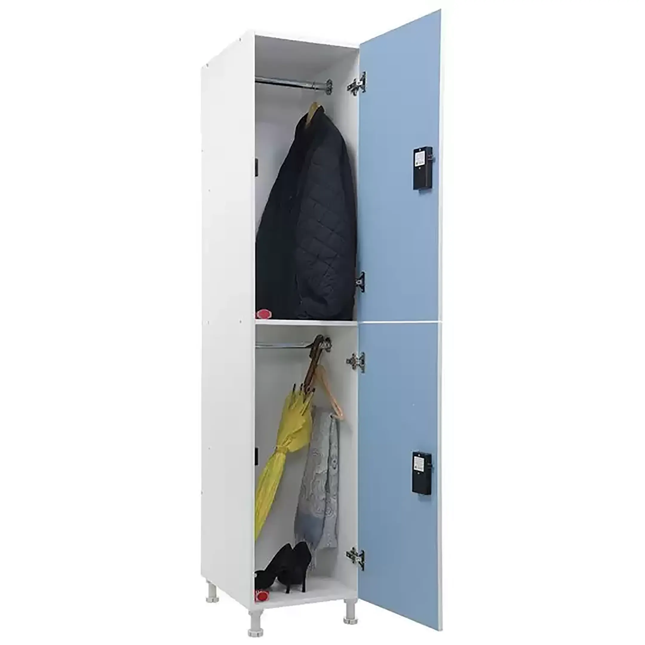 Шкаф для раздевалок WL 12-40 EL голубой/белый — это современное и функциональное решение для хранения одежды в спортивных, производственных, образовательных и других помещениях. Модель изготовлена из высококачественных материалов с применением современных технологий, оснащена электронным замком, выполняющим роль ручки для открывания двери.