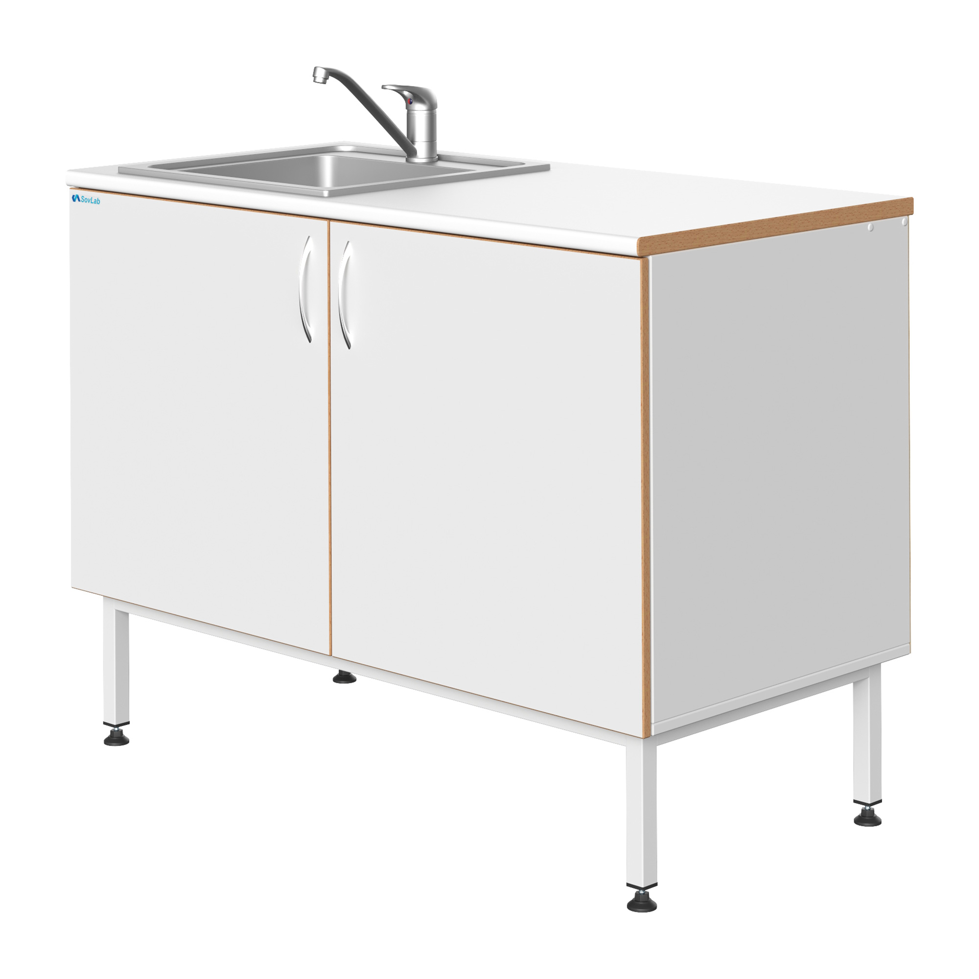 Мойка СОВЛАБ 1200 НЖ — это специализированное лабораторное оборудование, предназначенное для качественной и безопасной мойки лабораторной посуды, приборов и инструментов. Модель оснащена одинарной врезной чашей из нержавеющей стали, смесителем и всей необходимой арматурой для подключения к инженерным сетям. Тумба из влагостойкого ДСП установлена на прочный металлический каркас с регулируемыми опорами.