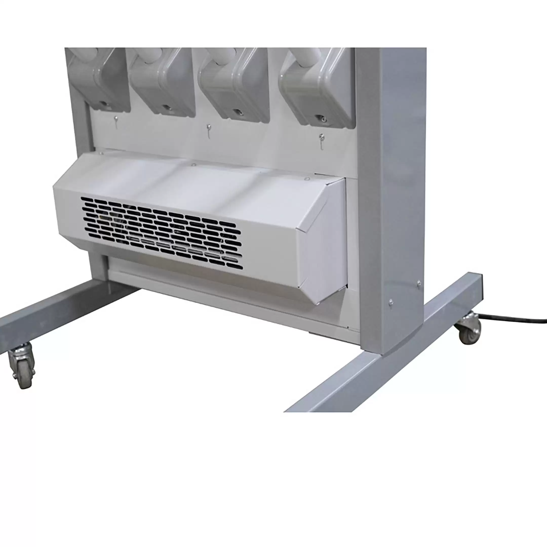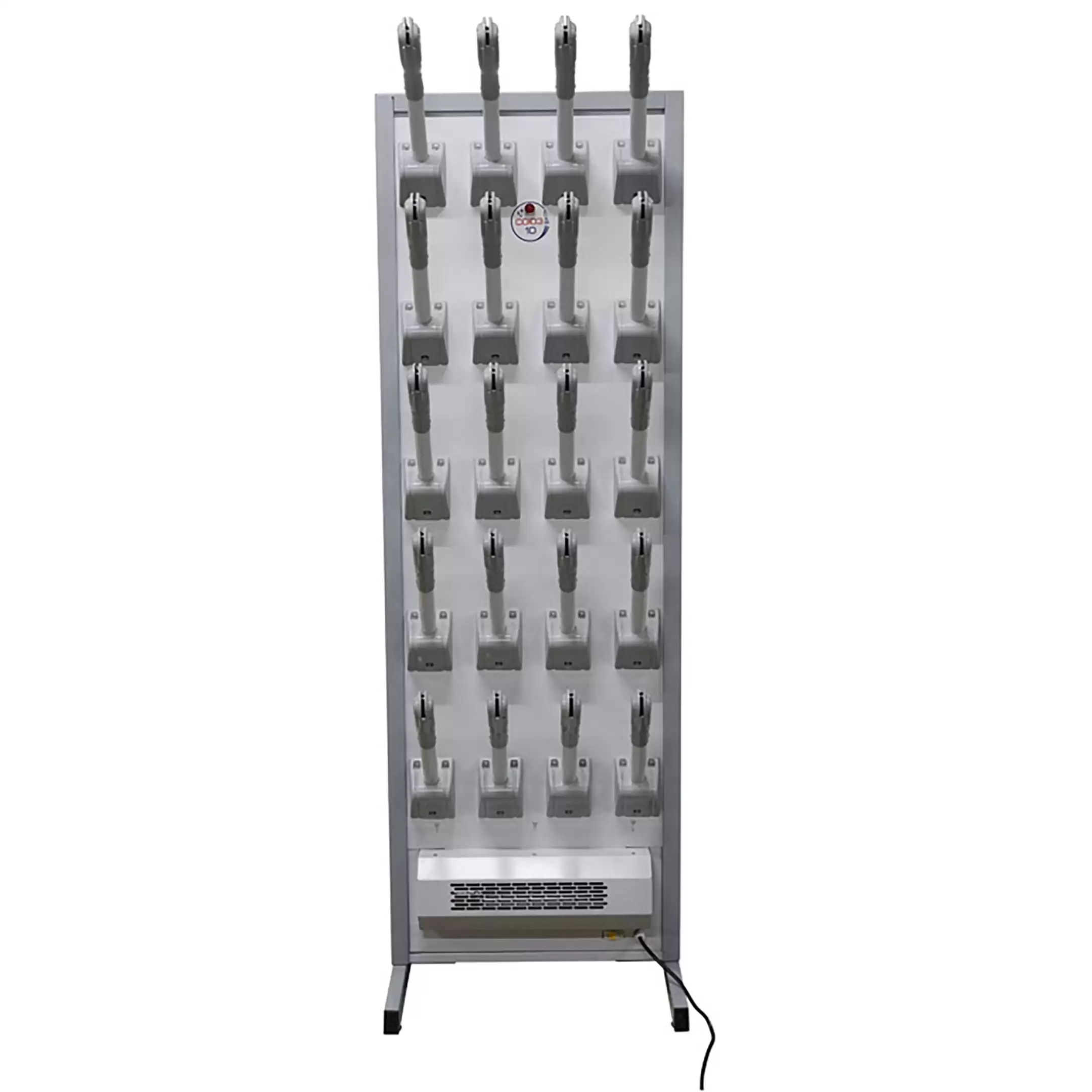 - Компактность и мобильность — комплект с подставкой представляет собой автономное решение, не требующее сложного монтажа. Его можно легко установить в любом удобном месте раздевалки, коридора или подсобного помещения и при необходимости переместить.