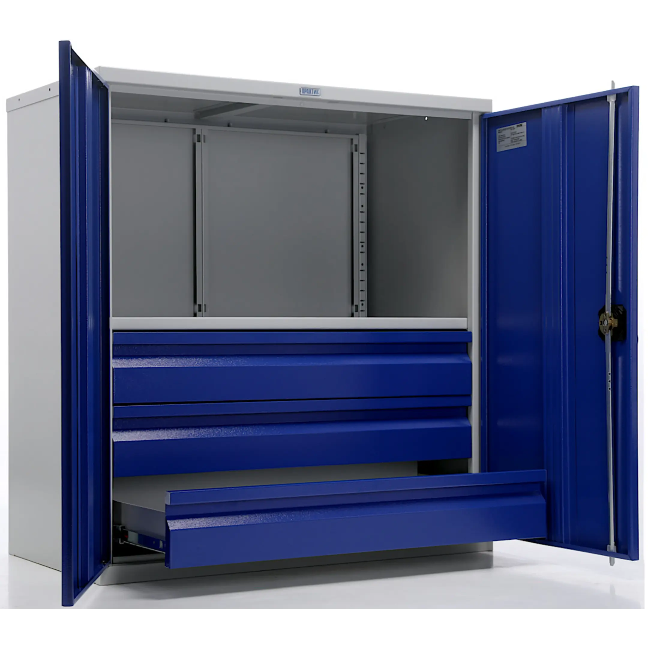 - Высочайший уровень защиты и безопасности — цельнометаллический корпус с запирающимися на общий замок дверями обеспечивает надежную защиту от краж и несанкционированного доступа. Конструкция также оберегает содержимое от производственных загрязнений: пыли, стружки, масла, брызг и влаги, что критически важно для поддержания инструмента в исправном и точном состоянии.