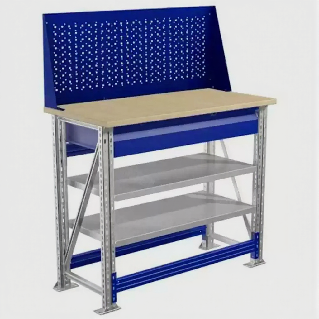 - Компактные размеры — столешница 1000х500 мм позволяет разместить верстак даже в небольших помещениях.