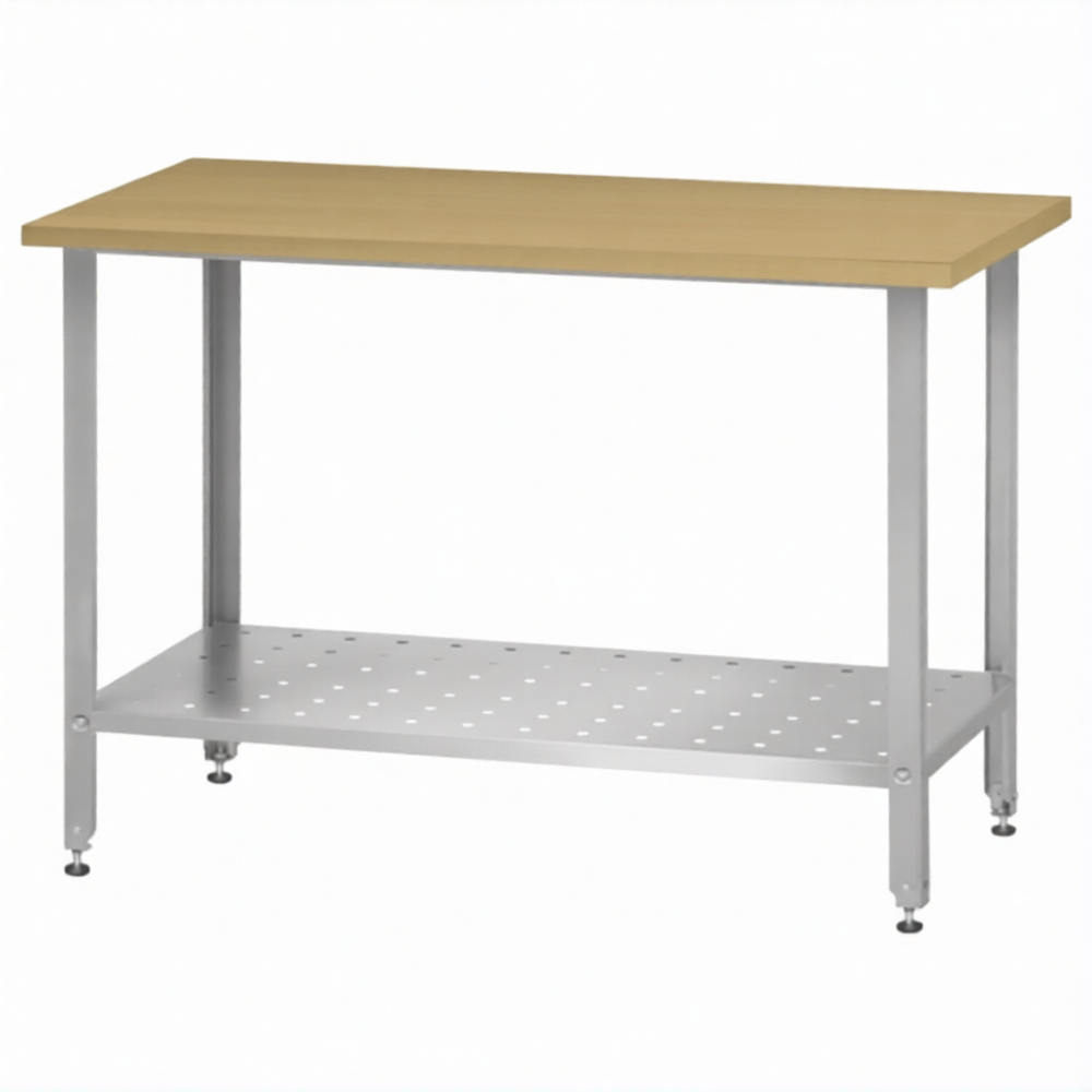 Стол кондитерский СПРн 860х1500х600 «Norma Zn» бук/40 (полка перф., ножка угловая)