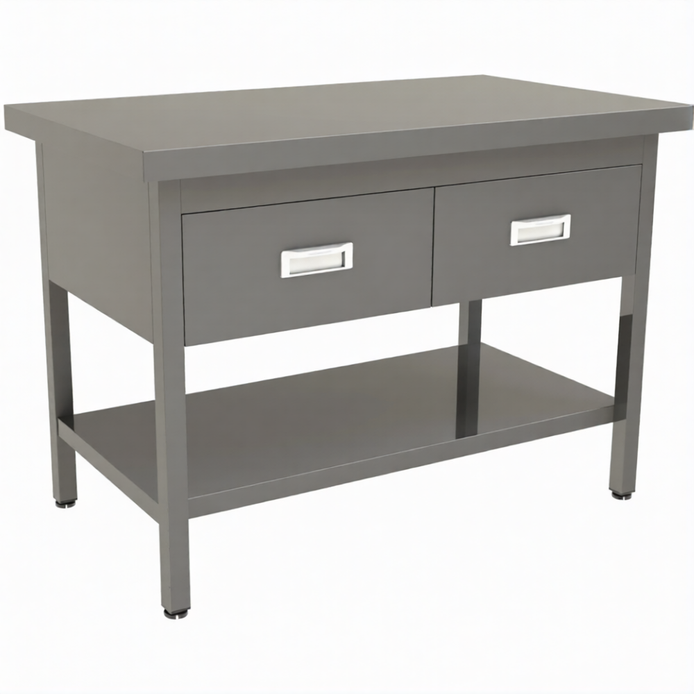 • 2 выдвижных ящика из нержавеющей стали.