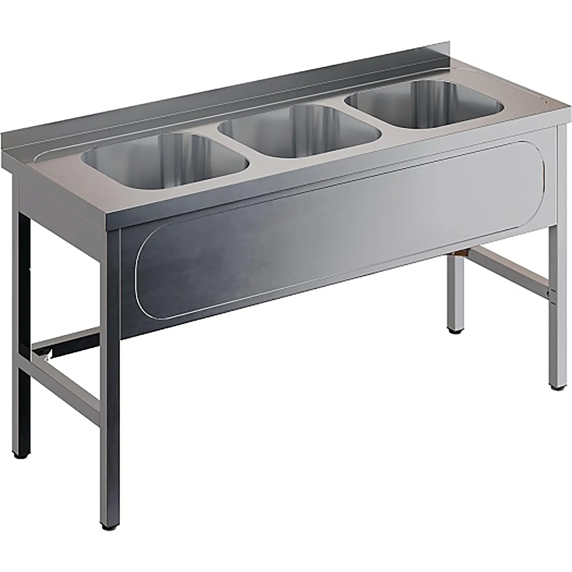 Ванна моечная трехсекционная цельнотянутая с бортом ВМЦ-3/18/7-Б разработана для применения в моечных отделениях предприятий общепита и торговли различного формата, пищевых производств и пищеблоков для мытья посуды, кухонного инвентаря, продуктов питания и рук персонала.