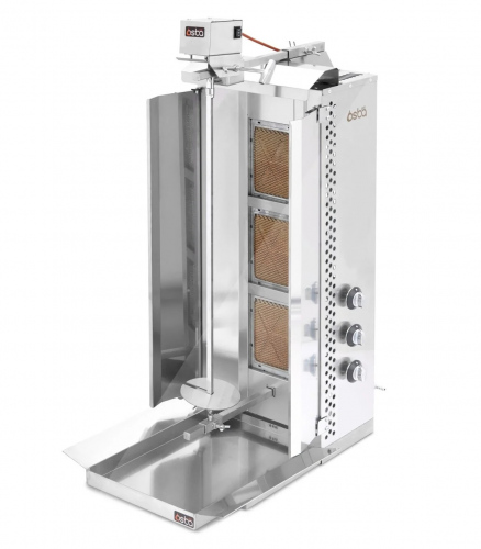 Гриль для шаурмы OSBA UST-03G — это профессиональное газовое оборудование для предприятий общественного питания, предназначенное для обжарки мясных заготовок цилиндрической формы, которые размещаются на вертикальный вертел. Модель используется на кухнях различных заведений: от ресторанов до точек быстрого питания.