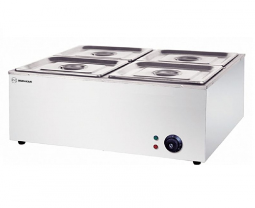 Мармит Hurakan HKN-BM4 предназначен для кратковременного хранения и поддержания в горячем состоянии различных блюд на предприятиях общественного питания и торговли. Модель оснащена ванной, регулируемым термостатом и индикатором нагрева. Корпус и ванна выполнены из нержавеющей стали.