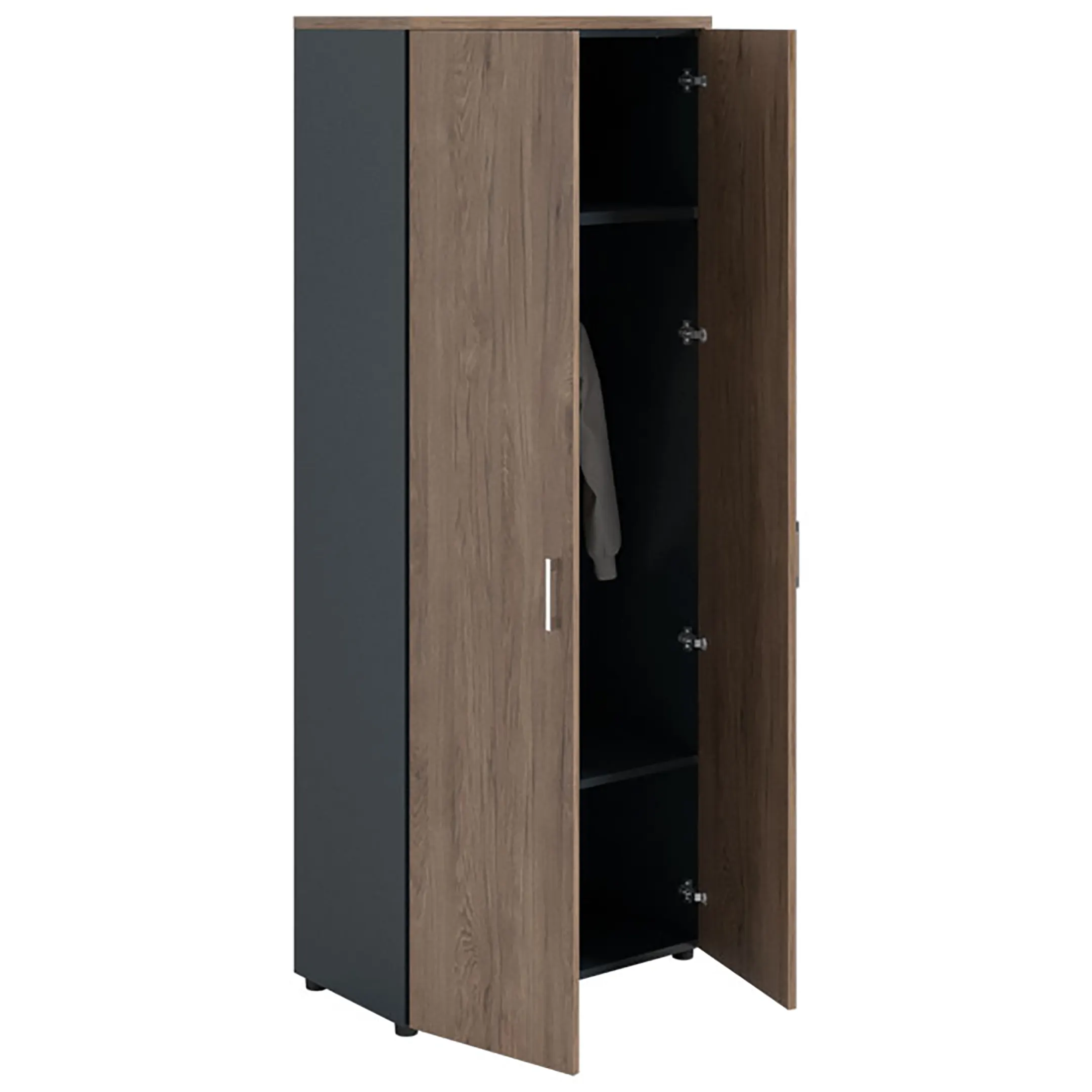 Шкаф NW 2080L гардеробный закрытый темный орех/антрацит предназначен для хранения.