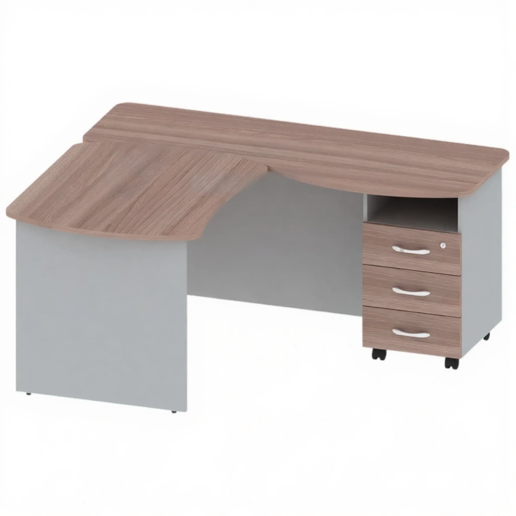 Стол угловой с тумбой правосторонний ОФ-СТ-104 — это специализированное рабочее место с угловой конструкцией для организации комфортных рабочих зон для правшей в офисах, административных учреждениях и учебных заведениях. Угловая форма стола позволяет оптимально использовать пространство помещения, предоставляя просторную рабочую поверхность. Правосторонняя компоновка с тумбой создает удобные условия для работы правшей, обеспечивая эргономичное расположение всех необходимых элементов рабочего места и легкий доступ к системам хранения.