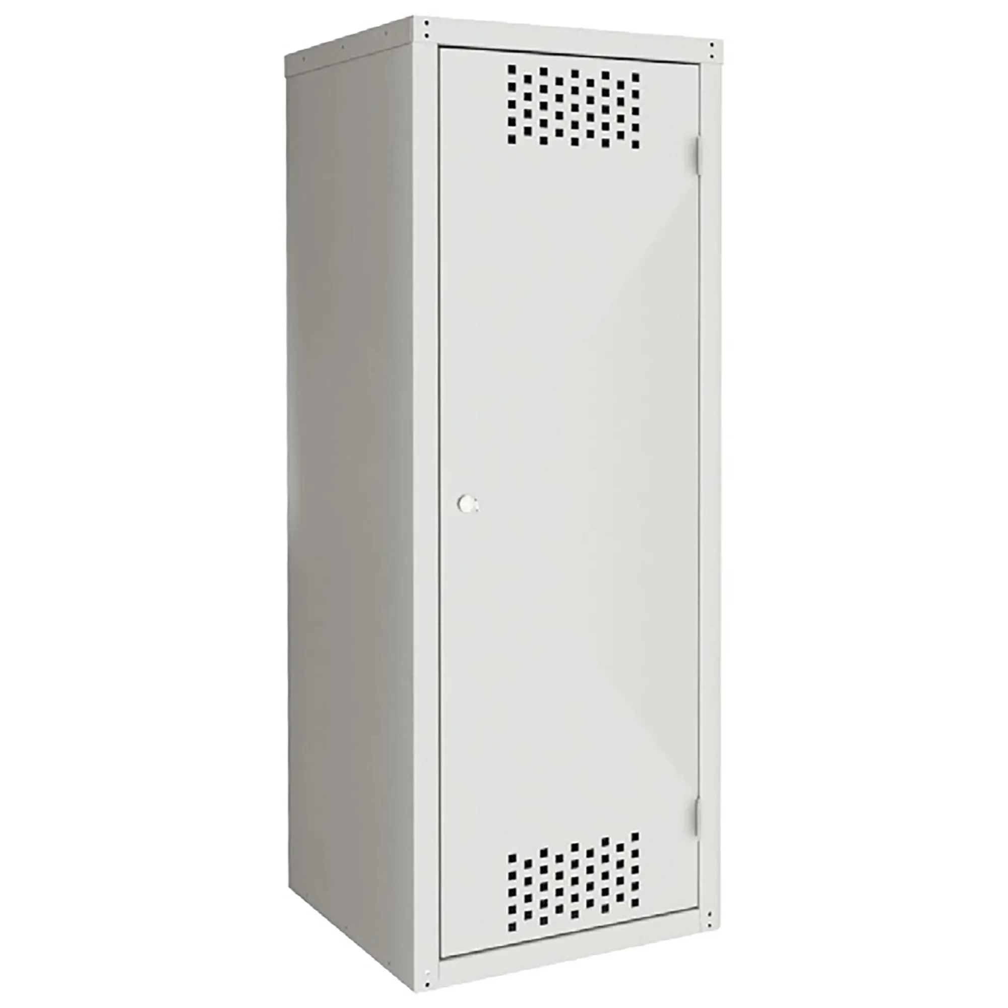 - Обеспечение базового уровня пожарной безопасности — шкаф изготовлен из огнестойкого металла и служит для изоляции газового баллона от случайных источников возгорания, искр и перегрева. Наличие вентиляционных отверстий (жалюзи) в нижней и верхней частях корпуса обеспечивает необходимый воздухообмен, предотвращая скопление взрывоопасной газовой смеси внутри в случае микроутечки.